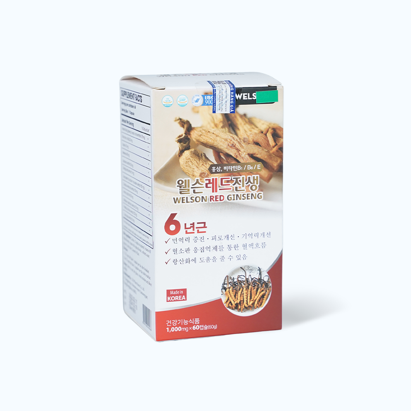 Viên uống Hồng Sâm Welson Red Ginseng là sản phẩm được nhiều người tin dùng để bồi bổ sức khỏe và nâng cao sức đề kháng. Với thành phần chính là hồng sâm Hàn Quốc 6 năm tuổi và đông trùng hạ thảo sản phẩm này mang đến nhiều lợi ích cho sức khỏe.