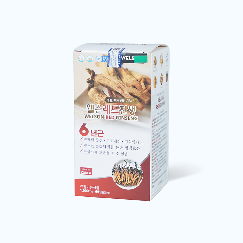 Viên uống hồng sâm Welson Red Ginseng hỗ trợ bồi bổ sức khỏe (Lọ 60 viên)