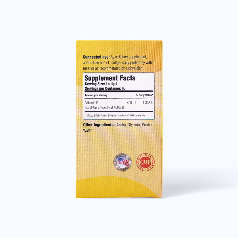 - Vitamin E (dưới dạng dl-Alpha Tocopheryl Acetate) 400IU, gelatin, glycerin, nước tinh khiết.