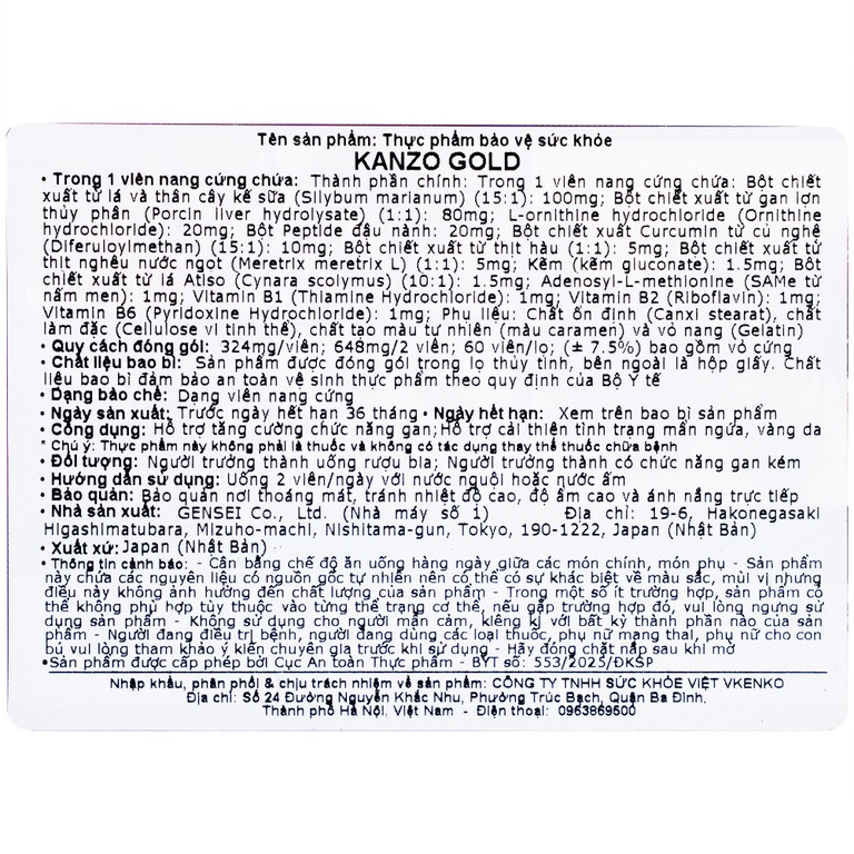 Viên uống Kanzo Gold hỗ trợ tăng cường chức năng gan, cải thiện tình trạng mẫn ngứa, vàng da (60 viên)SẢN PHẨM