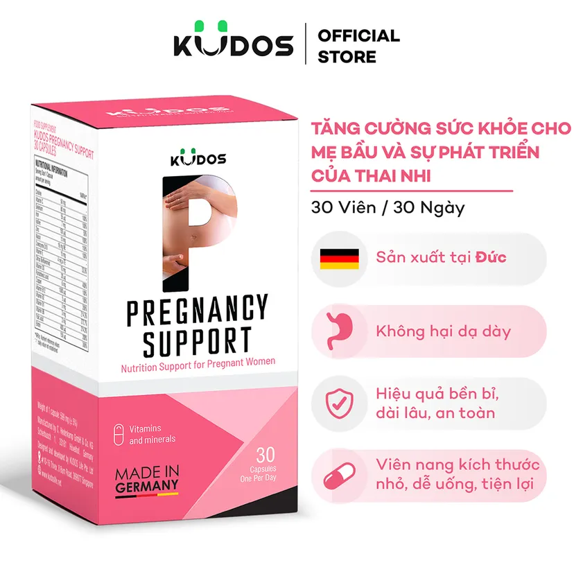 Viên uống Kudos Pregnancy Support bổ sung vitamin, khoáng chất cho bà bầu (Hộp 30 viên)