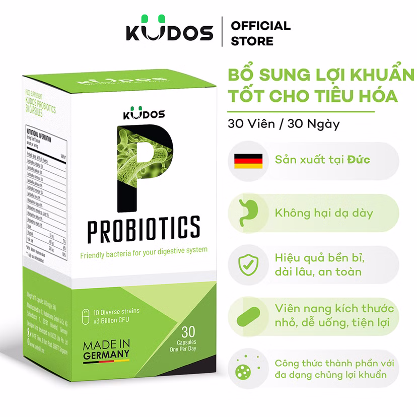Viên uống Kudos Probiotics bổ sung lợi khuẩn đường ruột, tốt cho tiêu hóa. (Hộp 30 viên)SẢN PHẨM