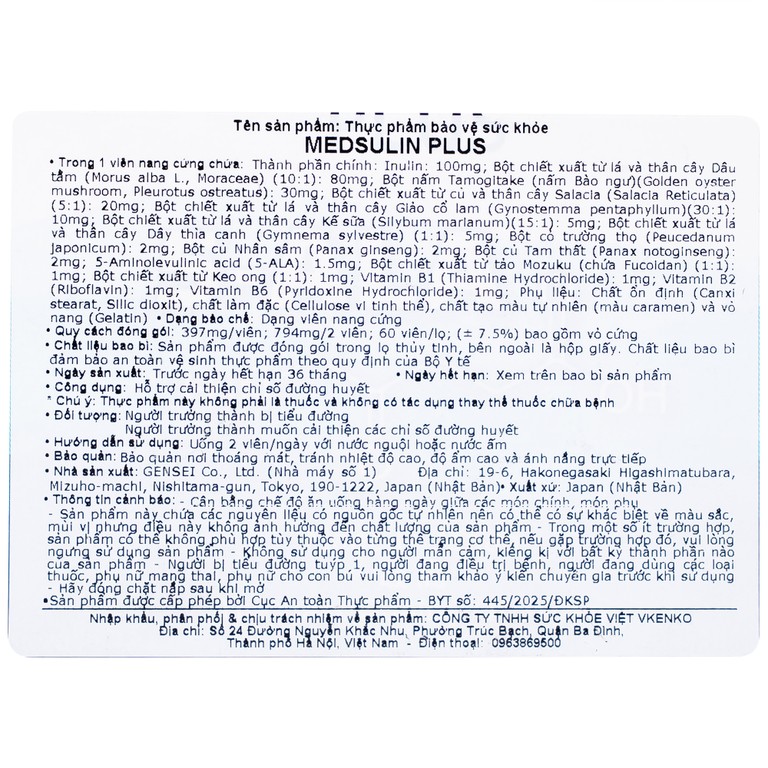 Thành phần của Viên uống Medsulin Plus