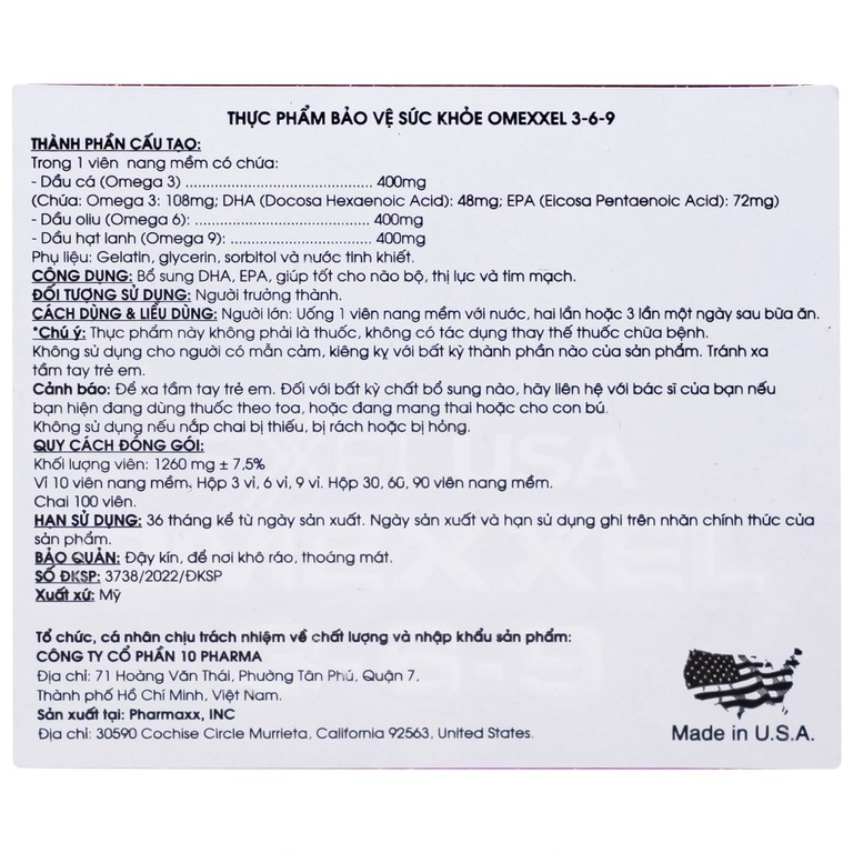 Omexxel 3-6-9 Excelife giúp bổ sung DHA, EPA giúp tốt cho não bộ, thị lực và tim mạch.