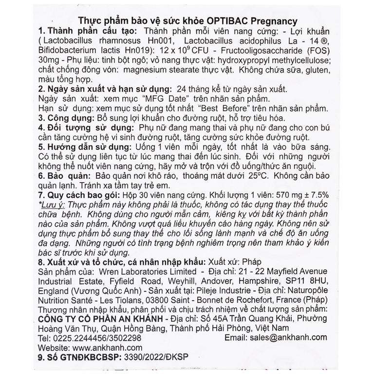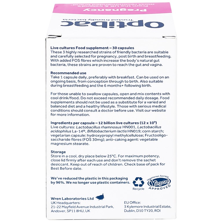 Optibac Pregnancy bổ sung lợi khuẩn cho đường ruột, hỗ trợ tiêu hóa.