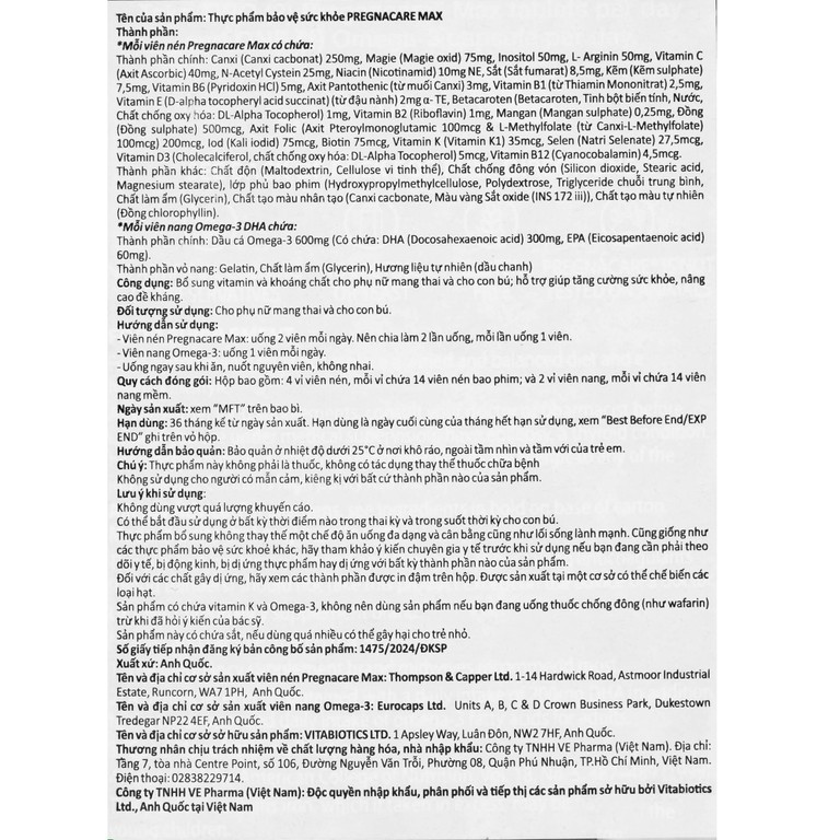 Viên uống Pregnacare Max Omega 3 DHA Vitabiotics cung cấp vitamin và khoáng chất cho phụ nữ mang thai (84 viên)Viên uống Pregnacare Max Omega 3 DHA Vitabiotics cung cấp vitamin và khoáng chất cho phụ nữ mang thai (84 viên)
