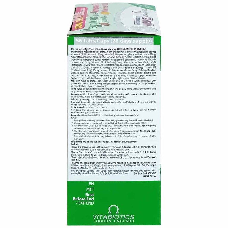 Viên uống Pregnacare Plus Omega-3 Vitabiotics bổ sung Vitamin, Omega-3 và khoáng chất (56 viên)SẢN PHẨM