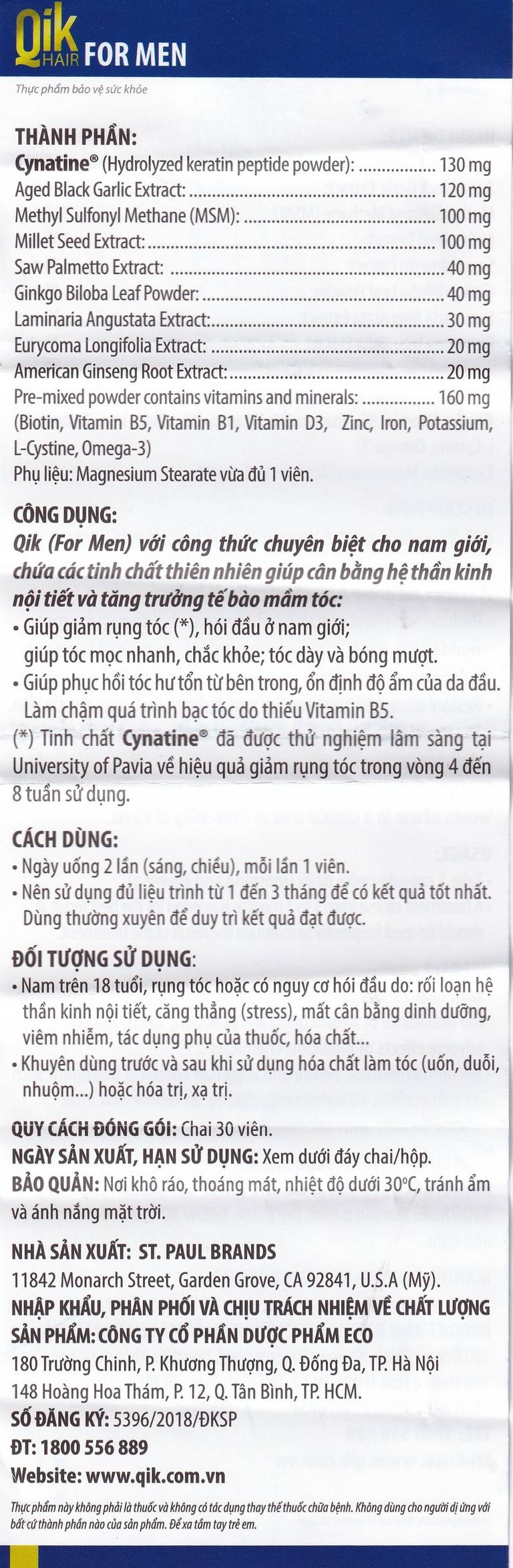 Qik Hair For Men được nghiên cứu và sản xuất tại Mỹ từ nhà sản xuất St. Paul Brands, nhập khẩu và phân phối bởi Dược phẩm Eco (Ecogreen). Thương hiệu Eco luôn cam kết mang đến cho người tiêu dùng sản phẩm có chất lượng tốt, an toàn, hiệu quả cải thiện cao, dịch vụ chuyên nghiệp với giá thành hợp lý.