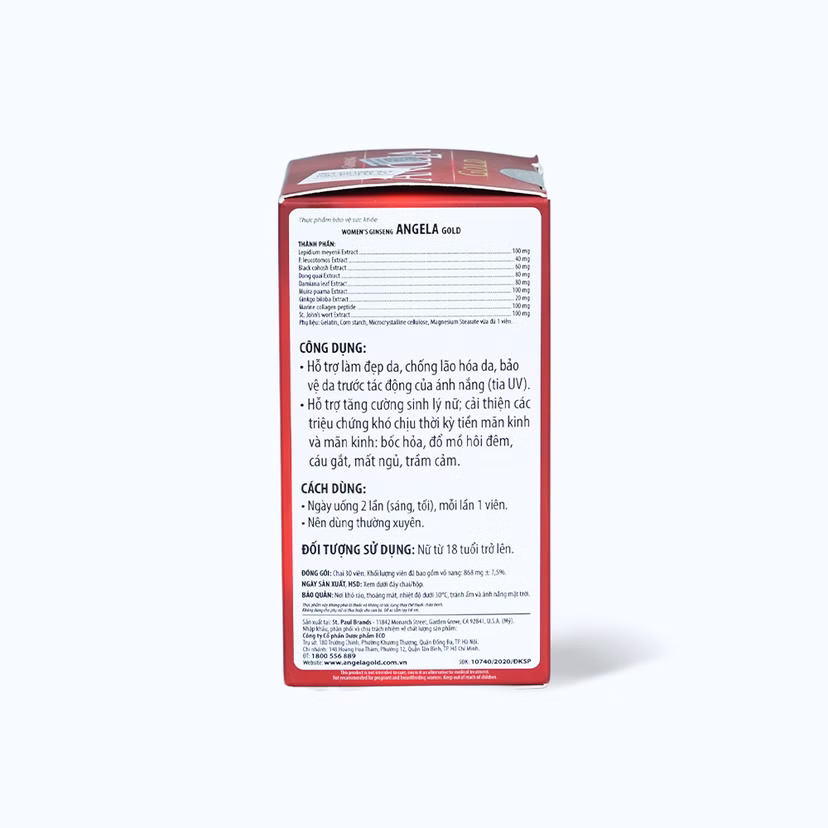Viên uống sâm ANGELA GOLD Ecogreen hỗ trợ tăng cường sinh lý nữ & đẹp da (Hộp 30 viên)