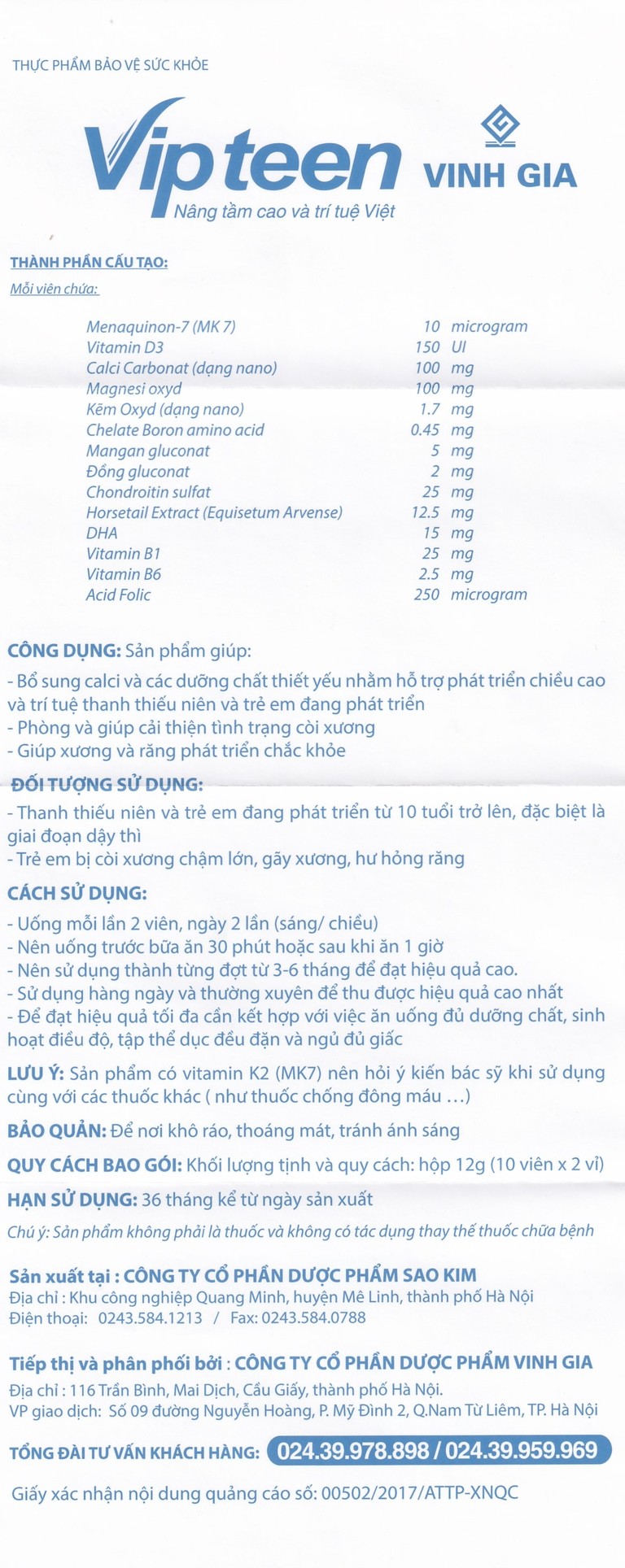 Vipteen Vinh Gia bổ sung các dưỡng chất thiết yếu nhằm hỗ trợ phát triển chiều cao và trí tuệ cho thanh thiếu niên và trẻ em đang phát triển.