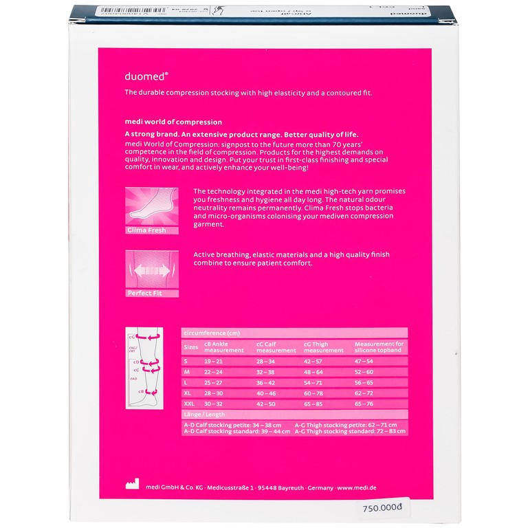 Yếu tố quyết định thời gian điều trị bệnh chính là lựa chọn loại vớ y khoa chất lượng từ thương hiệu uy tín. Vớ gối y khoa Medi Duomed size L là gợi ý mà bạn có thể tham khảo. Sản phẩm đã được khẳng định chất lượng qua nhiều năm có mặt tại thị trường Việt Nam, là biểu tượng của phương pháp điều trị mới suy tĩnh mạch bằng vớ y khoa.