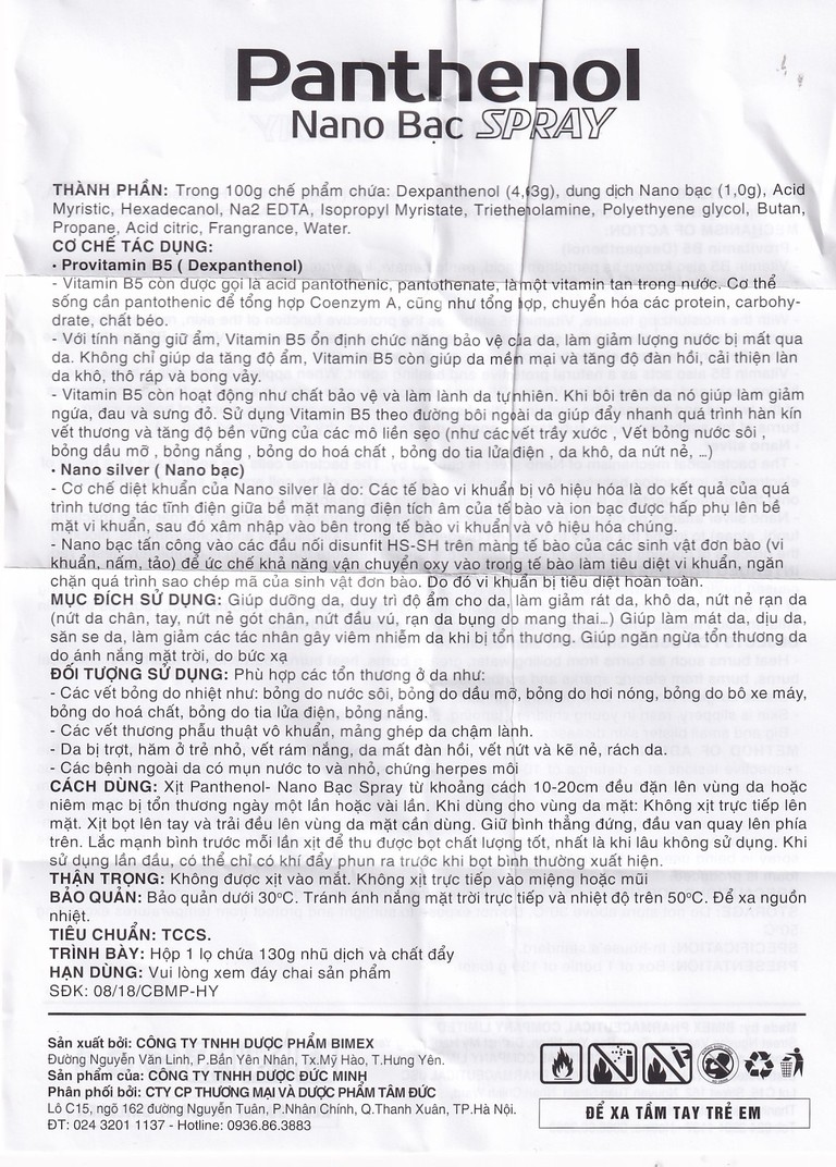 Xịt dưỡng da Panthenol Nano Bạc Bimex dưỡng ẩm da khô, nứt nẻ (130g)SẢN PHẨM