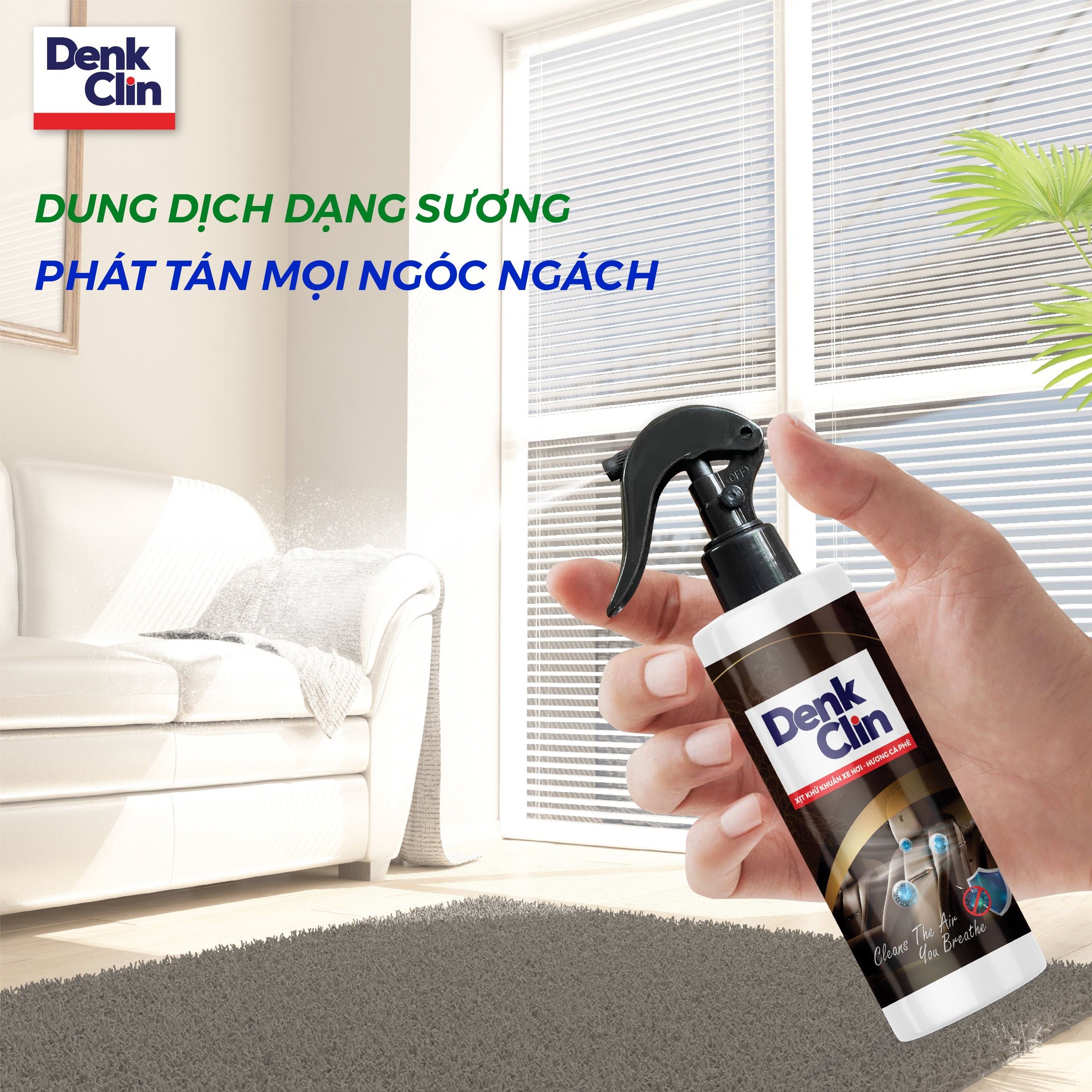 – Khác biệt với các sản phẩm thông thường chỉ che giấu mùi. Xịt khử khuẩn Denk Clin loại bỏ 90% mùi nấm mốc, mùi hôi, khói thuốc cải thiện ô nhiễm không khí, làm sạch và khử trùng không khí cho không gian: xe hơi, văn phòng, phòng tắm, nhà bếp v.v…không gây kích ứng, an toàn cho sức khỏe.