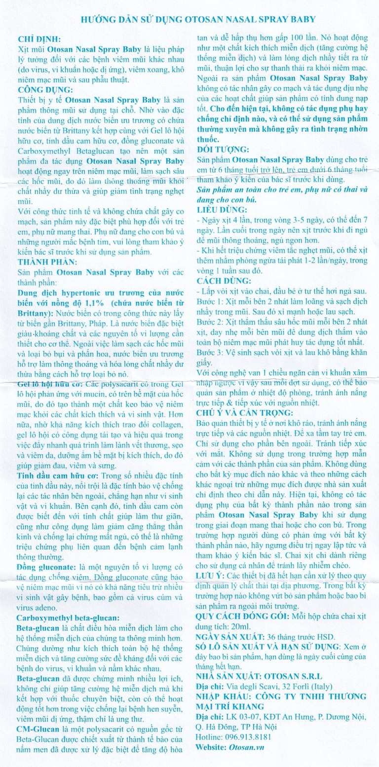 Thành phần của Xịt mũi Otosan Nasal Spray Baby 20ml